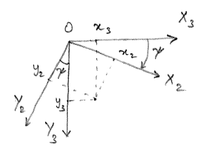 Figure 1.3: Rotation from \(X_3Y_3Z_3\) to \(X_2Y_2Z_2\)